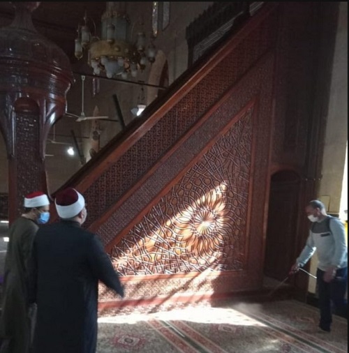 وتواصل وزارة الأوقاف، بجميع المديريات الإقليمية، تزيين المساجد، وشن حملاتها الموسعة لنظافتها وتطهيرها وتعقيمها حفاظًا على صحة المواطنين، في ظل الالتزام بالإجراءات الاحترازية لمواجهة فيروس كورونا، مطالبة الإمام أو المسئول عن المسجد عدم السماح بدخول أي عدد زائد عن العدد الذي يسعه المسجد من خلال علامات التباعد الموجودة به.