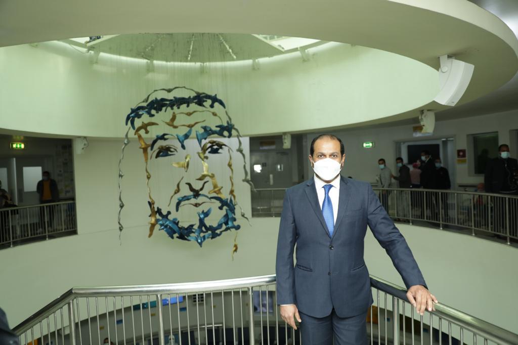كما استعرض الدكتور أحمد عبد العزيز من البحث العلمي بالمستشفى جهود البحث العلمي بـ 57357 في النجاح في تحديد التركيب الجينى لحالات كوفيد 19 الموجودة في مصر، و مع الالتزام بالإجراءات الاحترازية قام السفير الشامسي والوفد المرافق له بزيارة أطفال المستشفى فى قسم علاج اليوم الواحد وورشة العلاج بالفن وأسعدهم بهدايا جميلة كما زار الدكتور حمد الشامسي قسم البحث العلمي.