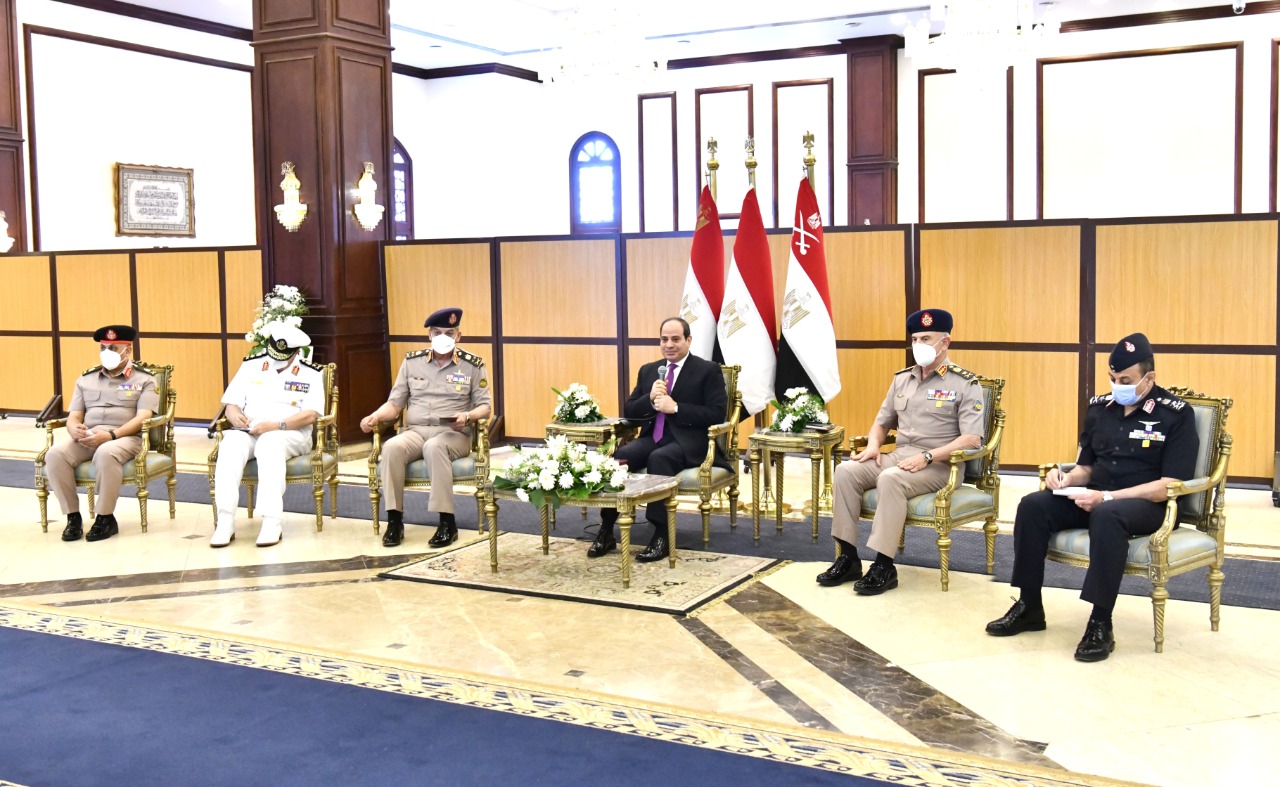 وناقش الرئيس عدد من كبار قادة القوات المسلحة في بعض الموضوعات المتعلقة بالأمن القومي المصري والتحديات التي تواجهها الدولة المصرية، مؤكدا أن رجال القوات المسلحة هم إمتداد لجيل أكتوبر العظيم يؤدون واجبهم بكل تفاني وإخلاص للحفاظ على الوطن وصون مقدساته.