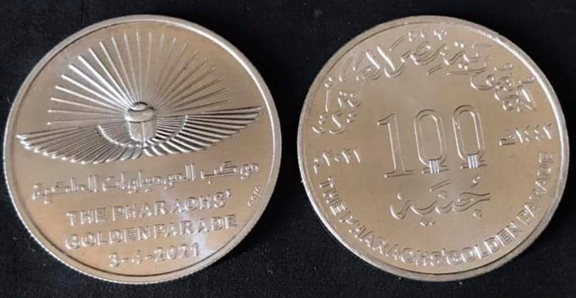 أصدرت وزارة المالية، عملة تذكارية من الفضة فئة ١٠٠ جنيه، تخليدا لحدث موكب نقل المومياوات الملكية من المتحف المصري بالتحرير الي المتحف القومي للحضارة المصرية بالفسطاط والذي أقيم في ٣ ابريل ٢٠٢١.