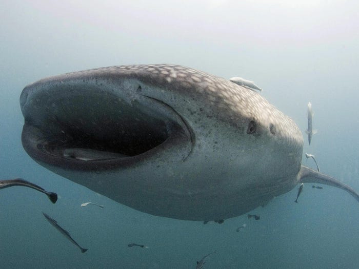4) قرش الحوت هو أكبر سمكة في المحيط، يمكن أن تنمو بحيث يبلغ طولها 60 قدمًا.