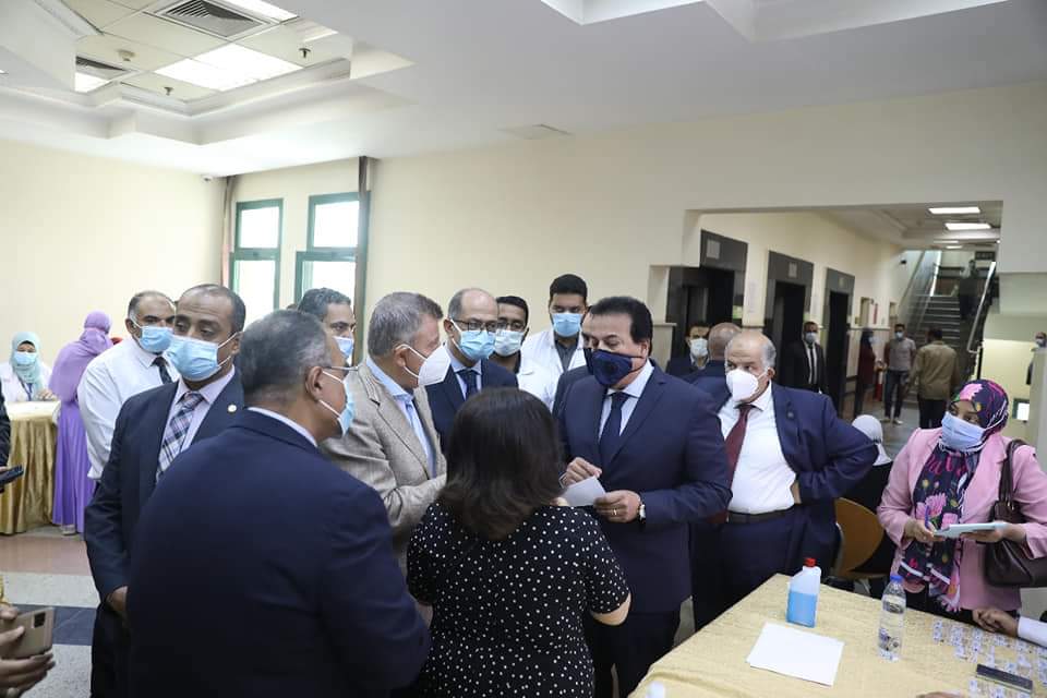 وزير التعليم العالي ورئيس جامعة عين شمس يتفقدان مراكز التطعيم ضد كورونا
