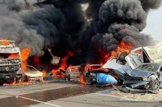 مصرع مواطن وإصابة آخرين إثر تصادم 11 سيارة واشتعال النيران على الطريق الدائرى الاوسطي